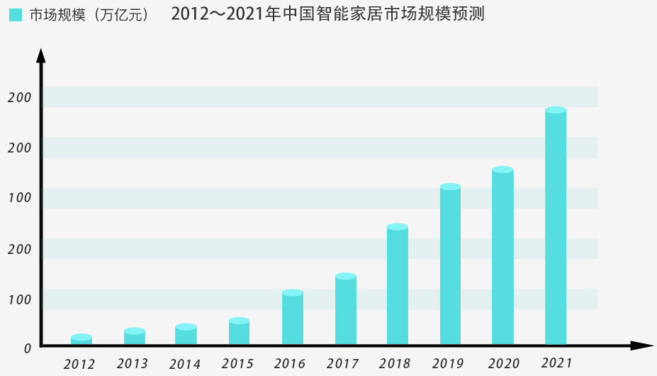 根據(jù)中國(guó)報(bào)告大廳發(fā)布的《2016-2021年中國(guó)智能家居行業(yè)發(fā)展分析及投資潛力研究報(bào)告》據(jù)測(cè)算,我國(guó)智能家居潛在市場(chǎng)規(guī)模約為5.8萬(wàn)億元。