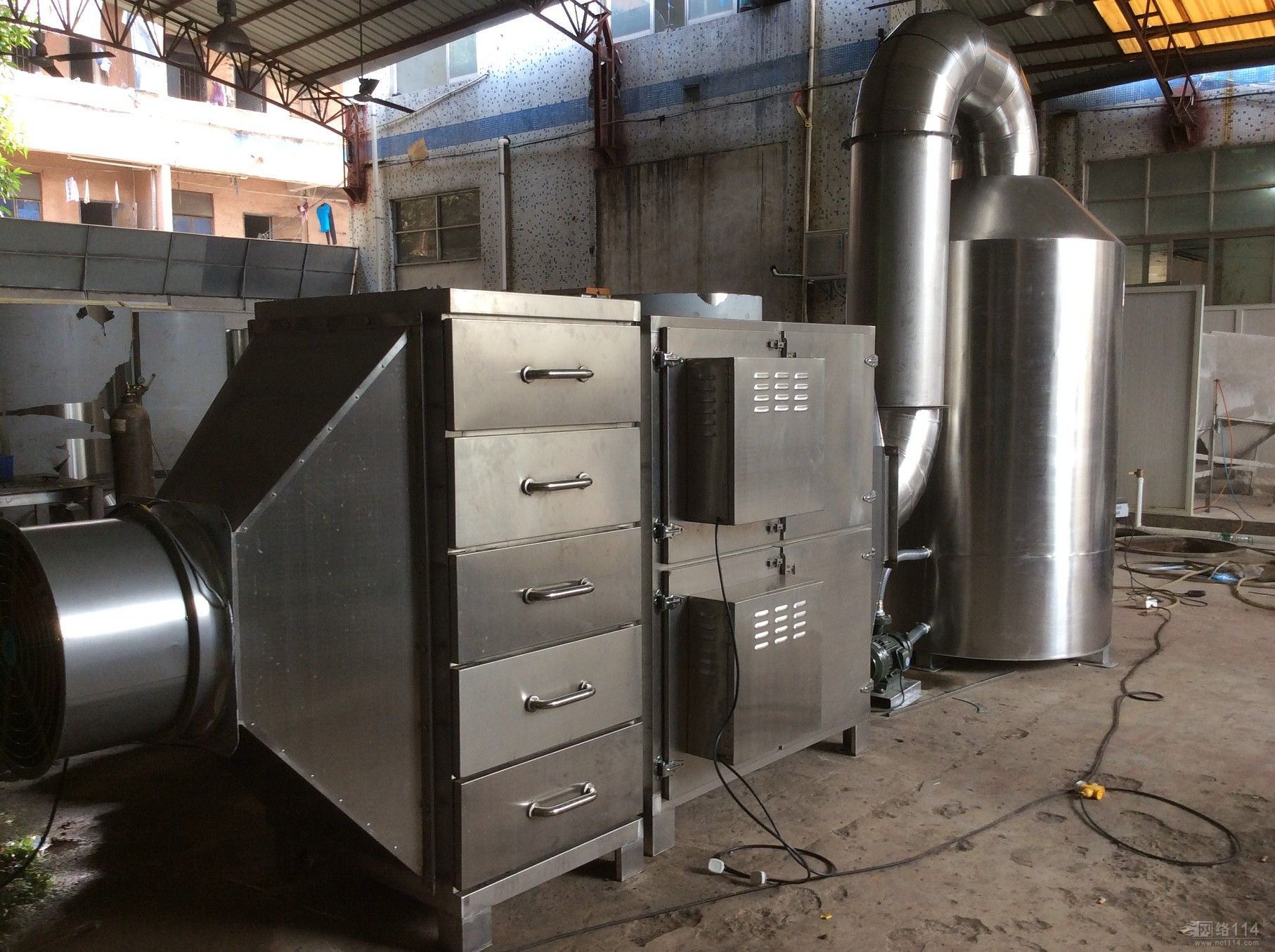 光離復合催化處理技術是一種專門去除有毒有害氣體及惡臭氣體的一種裝置。是等離子分解廢氣凈化器+UV光解除臭廢氣凈化器兩種設備的完美結合,綜合采用了等離子廢氣凈化器和紫外光觸媒除臭廢氣凈化器兩種設備的優點組合而成,利用等離子分解技術和UV紫外光解技術相結合,對廢氣和臭氣進行高效協同凈化處理!它具有高效率、運行成本低、設備占地面積小,自重輕、無任何機械動作,無噪音等特點,等離子光解一體機凈化設備凈化效率在95%以上。是目前市場上更佳的廢氣凈化設備。下面圖片就是我們光離復合廢氣處理設備