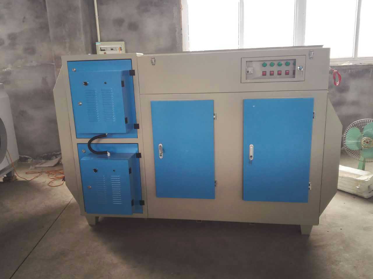 3、主機為成套工業廢氣處理裝置,前面配有專用塔,能有效去除廢氣中的粉塵和水分,操作簡單