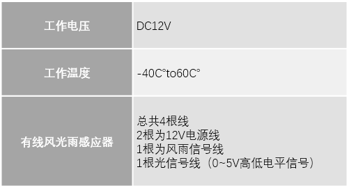 ¨風光雨傳感器采用單片機智能化的扣工資,既保證了風雨的快速反應(3秒響應時間),有兼顧了光感(2分鐘響應時間)雨感(25秒響應時間)的穩(wěn)定可靠